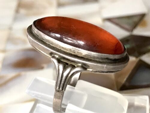 Alt Vintage 70er Bernstein DAMEN RING Silber 925 Gr. 58 schön Baltic Amber