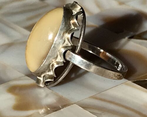 Alt Antik Edel Bernstein DAMEN RING Silber Super Design! Gr.62 19,7 mm
