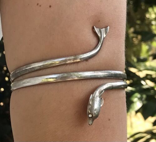 925 Silber Armreif 41g! Oberarm Armband Armspange wertig BOHO Vintage Delphin
