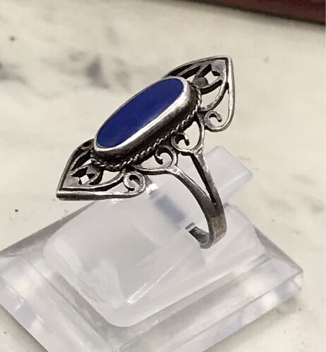 Alt Antik Edel Lapislazuli DAMEN RING Silber Schiffchen Gr.56 17,8 mm 1,78 mm