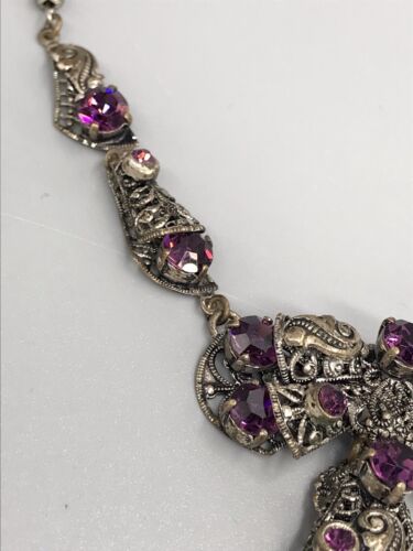 Antik alt Collier Halskette lila Steine Miriam Haskell? nicht signiert
