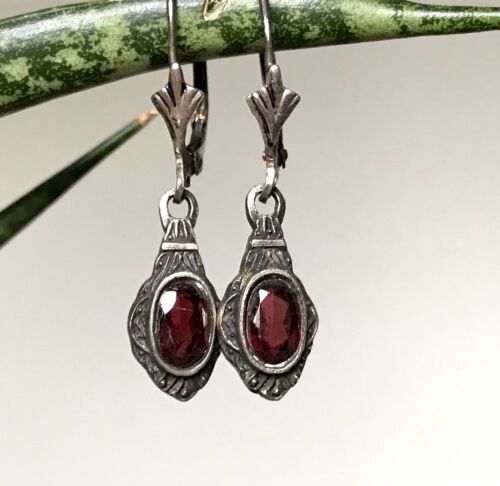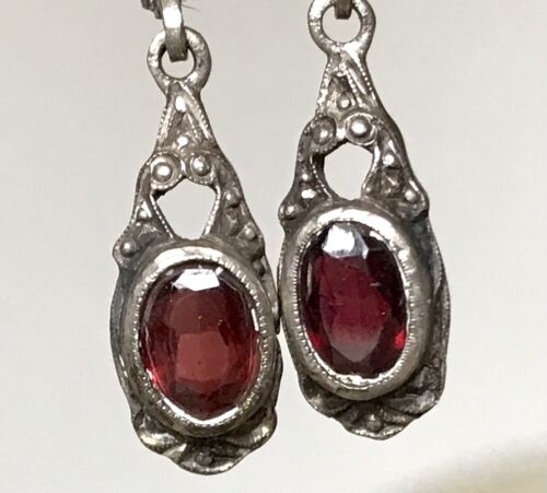 Antik Art Déco Edel Ohrhänger Ohrringe DAMEN Silber 835 rote Steine