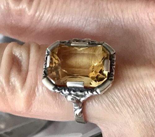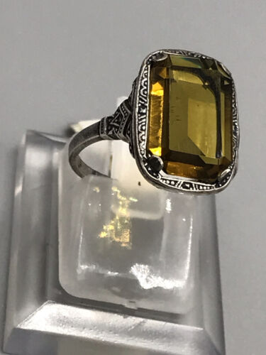 Antik Art Déco Edel Damen Ring Citrin? Stein Silber 935 Gr.53/54 16,8-17,2