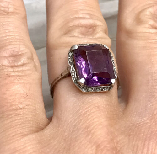Antik Art Déco Edel DAMEN RING Silber 925 Amethyst ? Gr.58 18,5