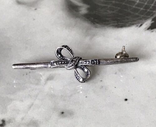 Antik Art Déco Edel Brosche Silber 925 Schleife Markasite
