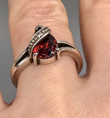 Antik Art Déco Edel DAMEN RING Silber 925 Super Design roter Stein Gr.53 16,8