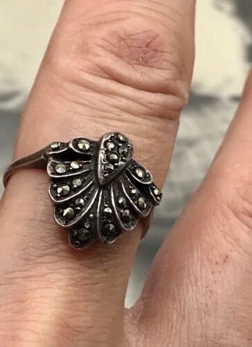 Antik Art Déco Edel Markasite DAMEN RING Silber 925 Gr.57 58 18,2 -18,5 mm