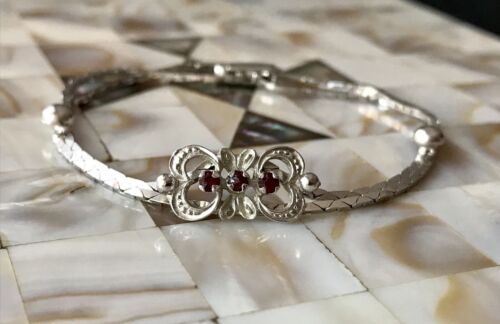 Antik Art Déco Edel DAMEN Armband Silber 835 rhodiniert SUPER 3 rote Steine WOW