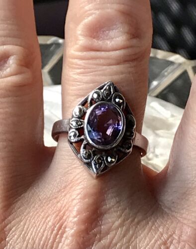 Antik Art Déco Edel DAMEN RING Silber 925 Amethyst ? Markasite Gr.56 17,8