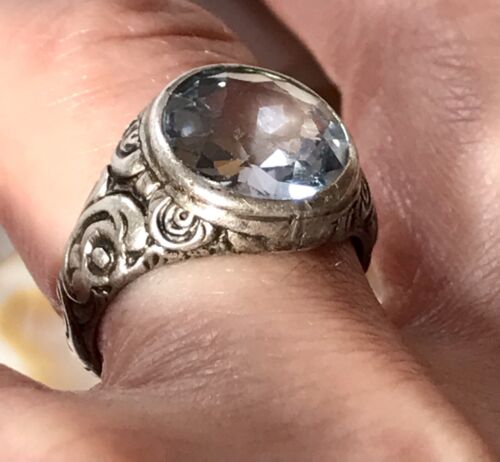 Antik Art Déco Edel DAMEN RING Silber 835 Super Design blauer Stein Gr.54 17,2