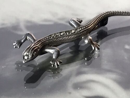 Antik Art Déco Edel prachtvoll Brosche Silber 835 Markasite Eidechse