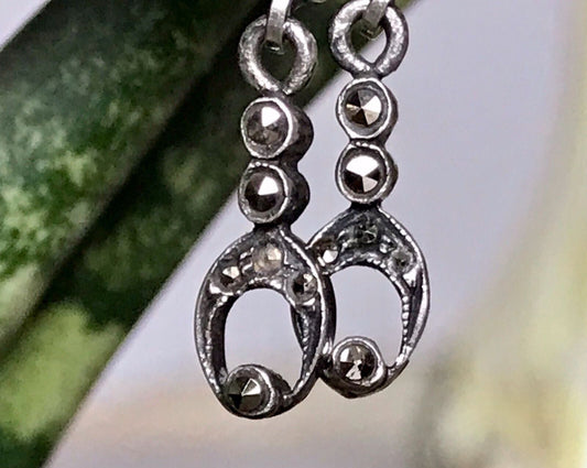 Antik Art Déco Edel Ohrhänger Ohrringe DAMEN Silber 925 SUPER Design Markasite