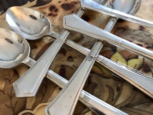 Antik Art Déco SJ&Co 90 Jäger versilbert Besteck 6 +2 Teelöffel Kaffeelöffel