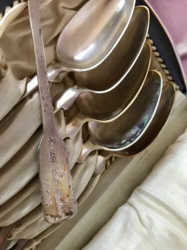 Antik Biedermeier 6x Löffel Teelöffel 12 Loth Lot Silber Echtsilber 1847 im Etui