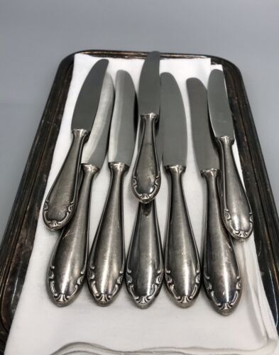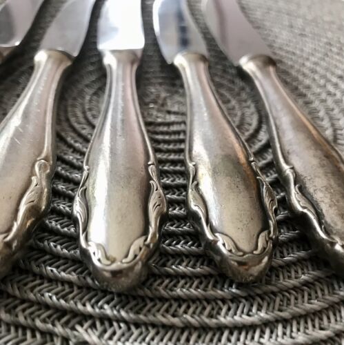 Antik 5x & 3x Art Déco versilbert Tafelmesser Menümesser Besteck BMF