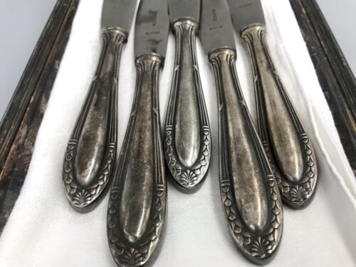Antik ? 5x Art Déco versilbert Tafelmesser Menümesser Messer Besteck WMF ?