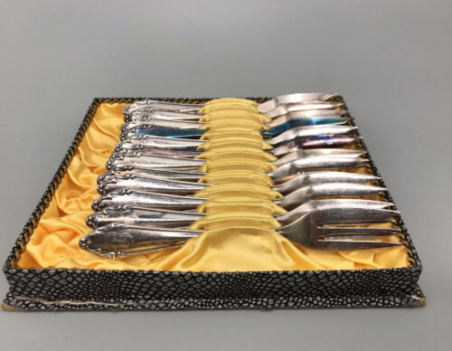 Antik Art Déco versilbert Besteck 12 Kuchengabel Julius Kratz Solingen im Kasten