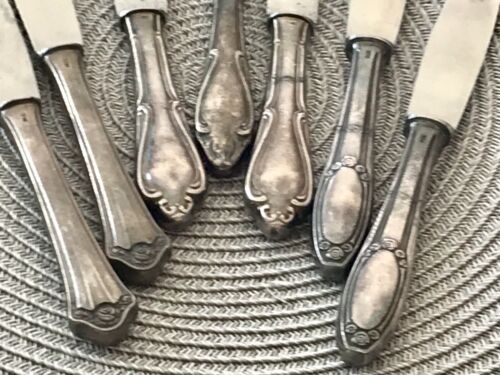 Antik 7x Art Déco versilbert Tafelmesser Menümesser Messer Besteck Konvolut