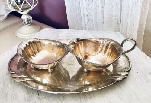 Antik Art Déco Hoka 40er Jahre Sahne-Satz Milch& Zucker versilbert 3 Teile