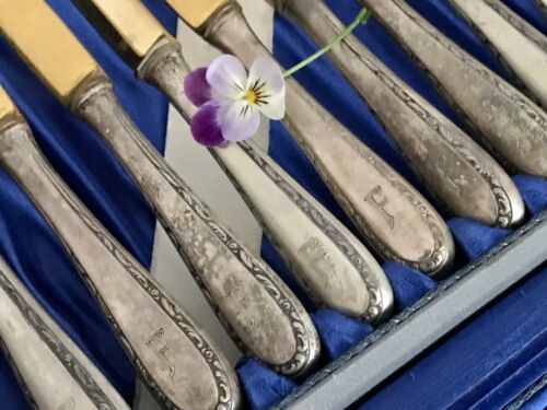 Antik Jugendstil 800 Silber Obst-Besteck vergoldet 12 Personen im Besteckkoffer