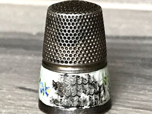 Antik Fingerhut 900 Silber Emaile Vergissmeinnicht