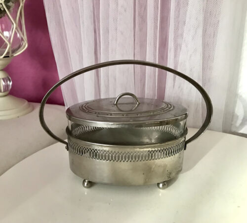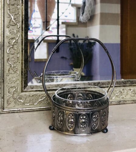 Antik Jugendstil versilbert Metallmontur Schale Zuckerschale Glaseinsatz