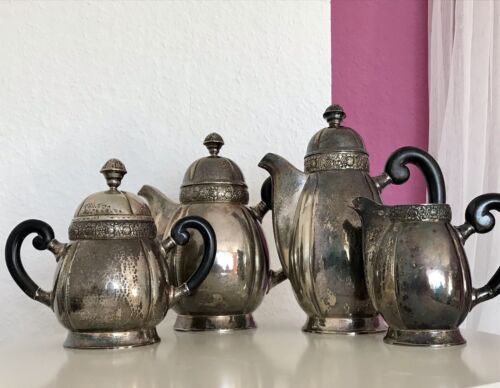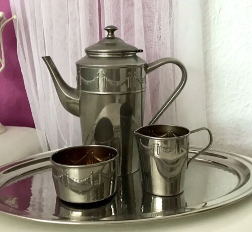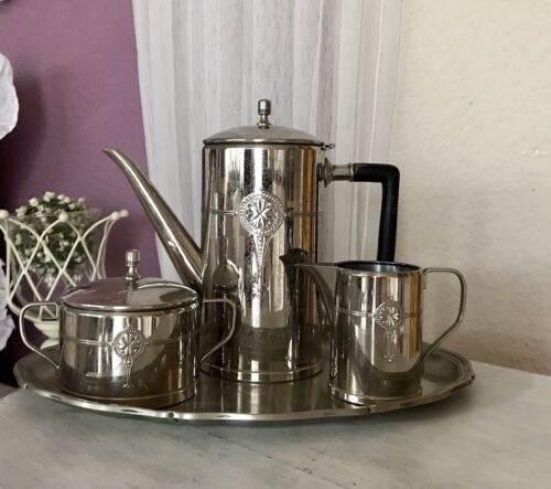 Antik Jugendstil Kaffee Kernstück Zuckerdose Rahmgießer Kanne versilbert ? 3tlg