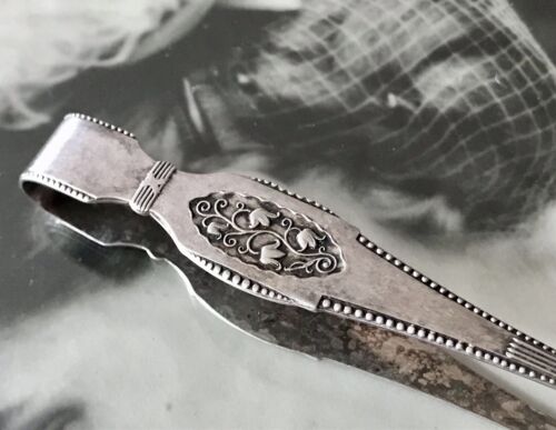 Antik Edel Jugendstil Zuckerzange Konfektzange Alpacca versilbert
