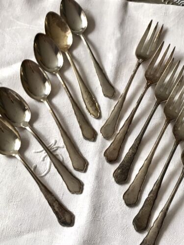 Antik Chippendale WMF 90 versilbert Kuchen Besteck 6+6 Kuchengabel Kaffeelöffel
