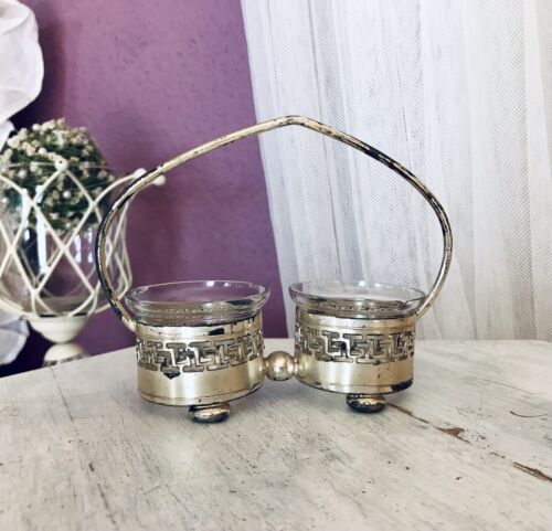 Antik englisch Gewürzständer Menage versilbert Glaseinsätze Mäander-Muster