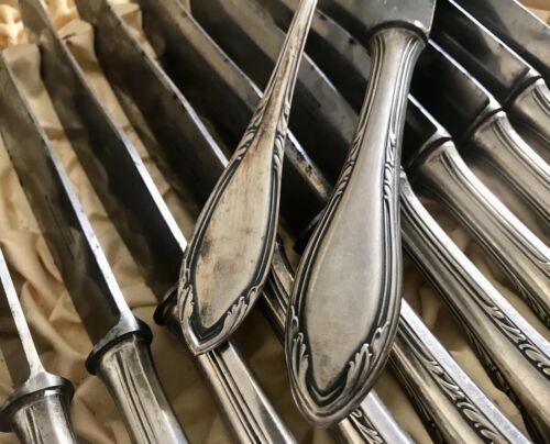 Antik Jugendstil Art Déco versilbert Besteck 12 Personen & Besteckkasten