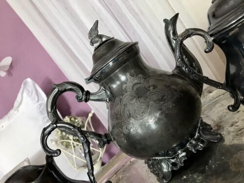 Antik Kaffee Kernstück 3 Teile Kanne Milch& Zucker versilbert viktorianisch