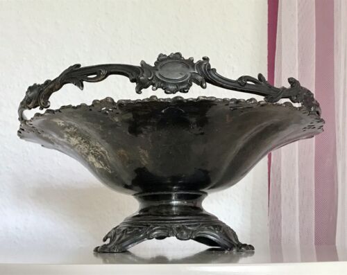 Antik große Schale Fußschale Tafelaufsatz versilbert Korbschale wundervoll!