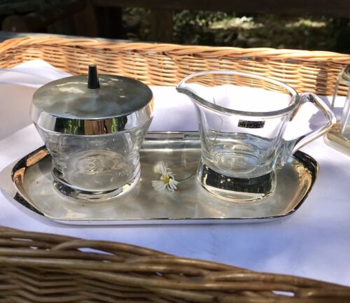 Antik WMF 50er Jahre Sahne-Satz Milch& Zucker Glas & versilbert 3 Teile