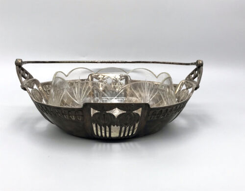 Antik WMF Schale Art Nouveau Jugendstil Korbschale Glaseinsatz Tafelaufsatz WOW!