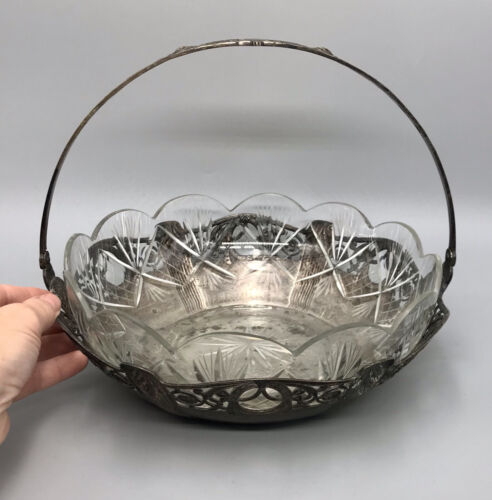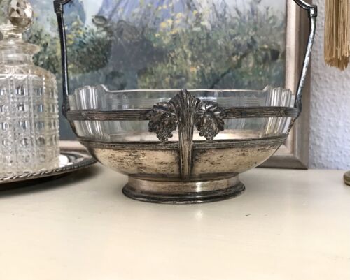 Antik WMF Schale Art Nouveau Jugendstil Korbschale Glaseinsatz Tafelaufsatz Korb