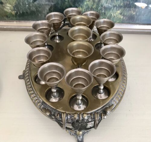 Antik WMFM WMF Likör Set Tablett Ständer 15 Becher Likörbecher ehem. versilbert