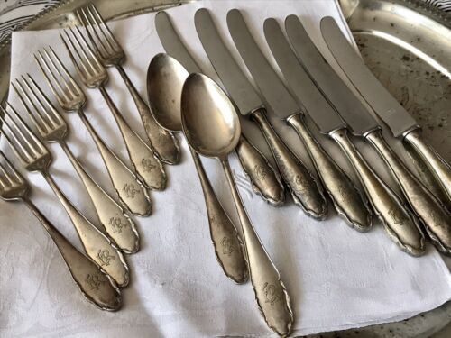 Antik WMF Art Dèco barock versilbert Tafel Besteck 6 Personen 14 Teile Konvolut