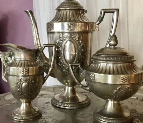 Antik WMF WMFN um 1890 Kaffee Kernstück Zuckerdose Rahmgießer Kanne versilbert