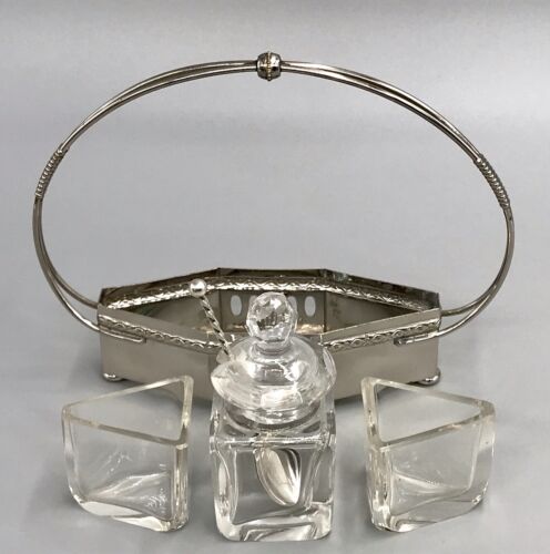 Antik WMF Straußenmarke Jugendstil Gewürzständer Menage verchromt Glaseinsätze