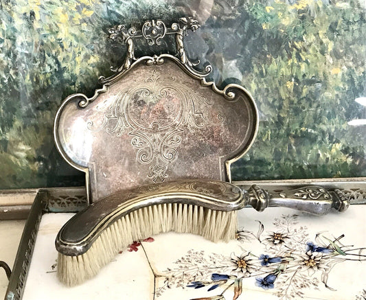 Antik versilbert Jugendstil Tischkehrset Tischkehrer Tisch Krümmelkehrer