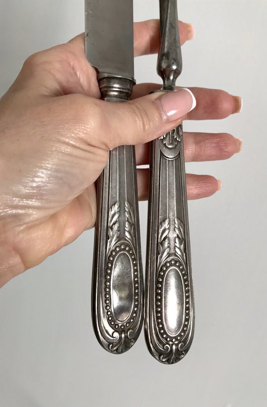 Antik französisch 2teiliges Tranchier Besteck versilbert Tranchierbesteck