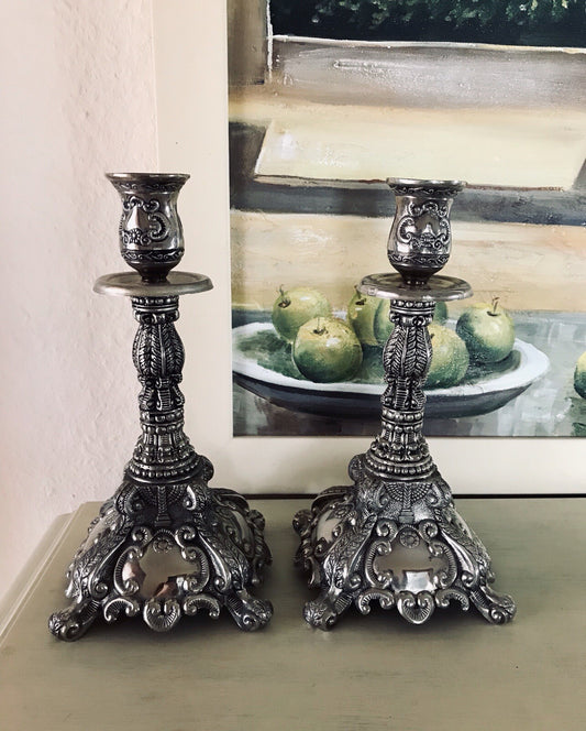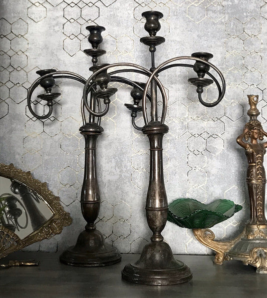 Antik 2 Jugendstil ehemals versilbert Kandelaber Kerzenständer Leuchter ~1890