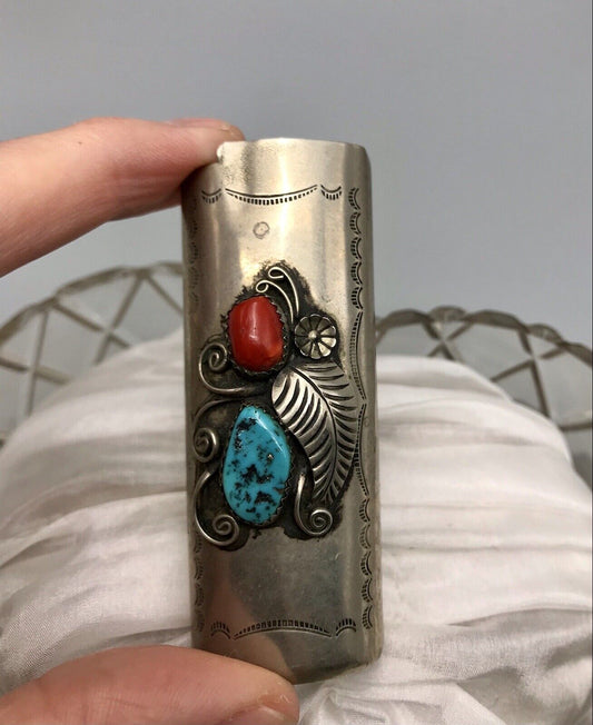 Alt Vintage Ethno Navajo Feuerzeughülle für BIC versilbert Steine Türkis usw.