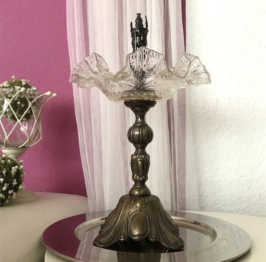 Antik Schale Tafelaufsatz ehemals versilbert Glaseinsatz
