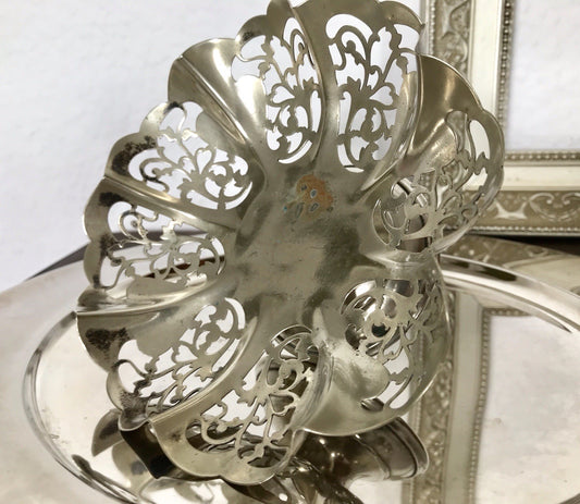 Alt antik? EPNS Art Déco Schale versilbert Durchbruchmuster Fußschale