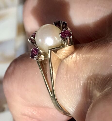 Antik Alt Edel Fantastischer DAMEN RING Gelbgold Gold 585 Perle Rubine? Gr.57