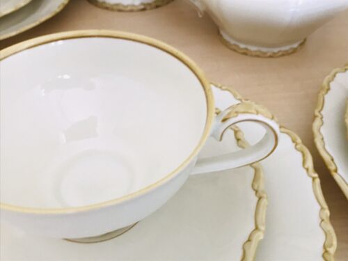 Vintage schönes Porzellan Tafelservice Esservice Hutschenreuther weiß gold MCM