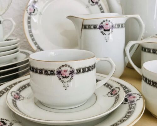Edel Antik Art Déco Carstens Sorau Porzellan Kaffeeservice 9 Pers. + Elfenbein
