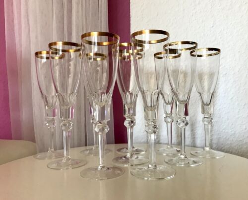 Antik 10 EDEL Sektflöten Sektgläser Glas Kristallglas EINMALIG! Selten Goldrand